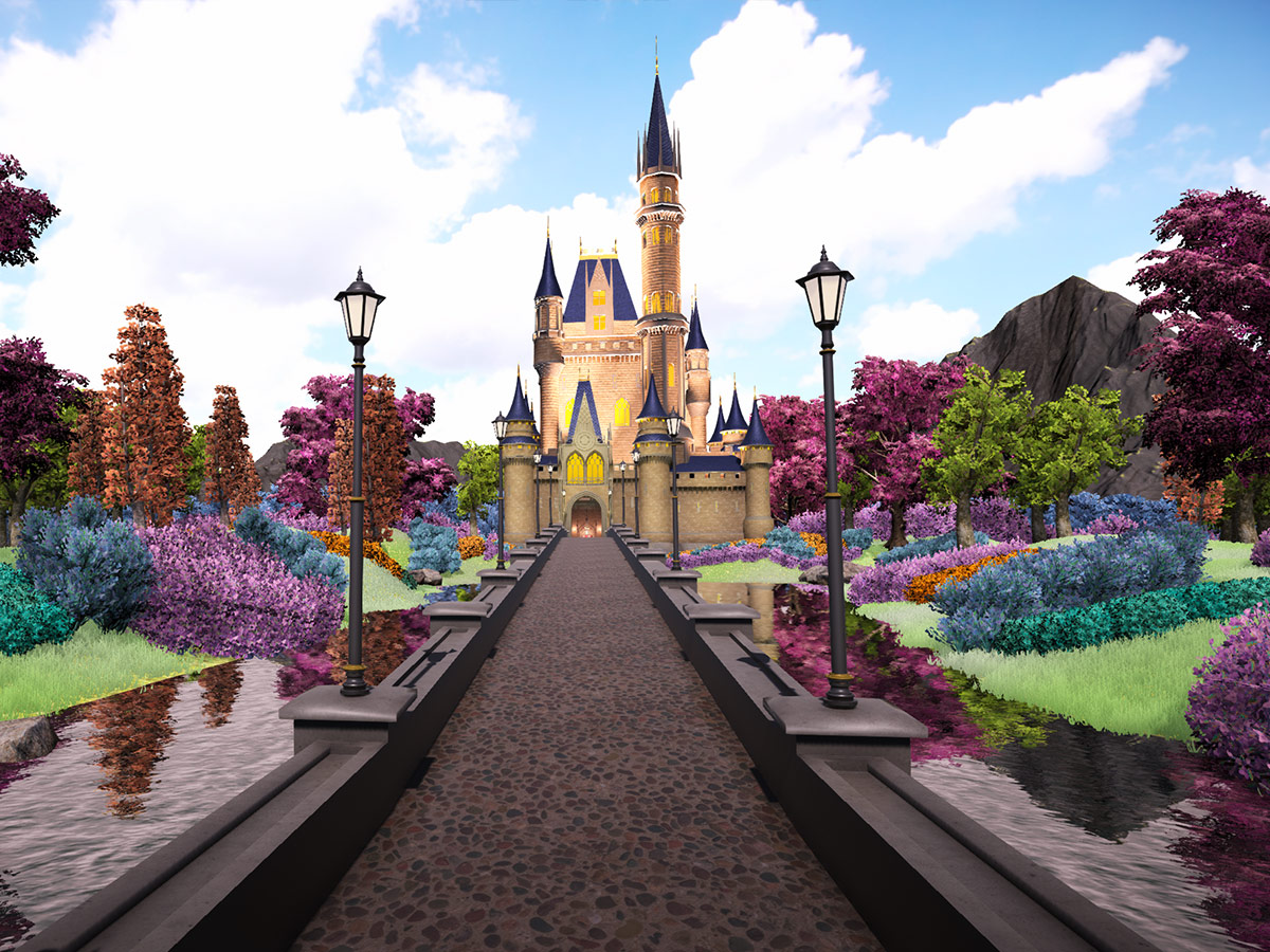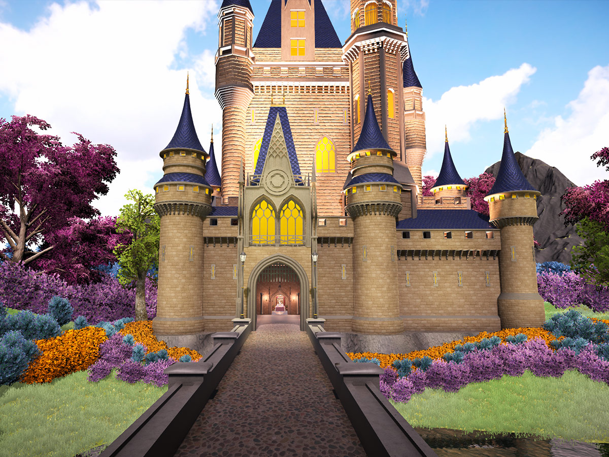 For this project Disney Event Group wanted us to create a stylized castle fly through for a video. The turn around time for the project was limited and there wasn't enough time to render from Maya because of the time it would have taken to render each frame. Our solution was to create the scene inside of Unity 3D and use real time captures for the camera movements. This allowed us to make quick changes to the environment and camera animations with out lengthy re-renders.